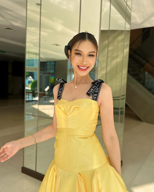 Peemai Saruda Panyakham – Most Beautiful Thai Transgender Woman Clothing Style in Yellow Midi Dress